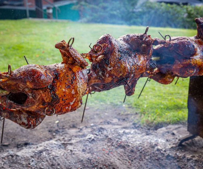 Unsere Hausspezialität ist die „Pute vom Spieß„. Diese knusprige Leckerei wird mit einem bunten Beilagen- und Salatbuffet von Mai bis Oktober jeden Samstag ab 18:30 Uhr frisch gegrillt serviert. Für Gruppen ab 20 Personen nehmen wir gerne auch zu anderen Zeiten Bestellungen entgegen.